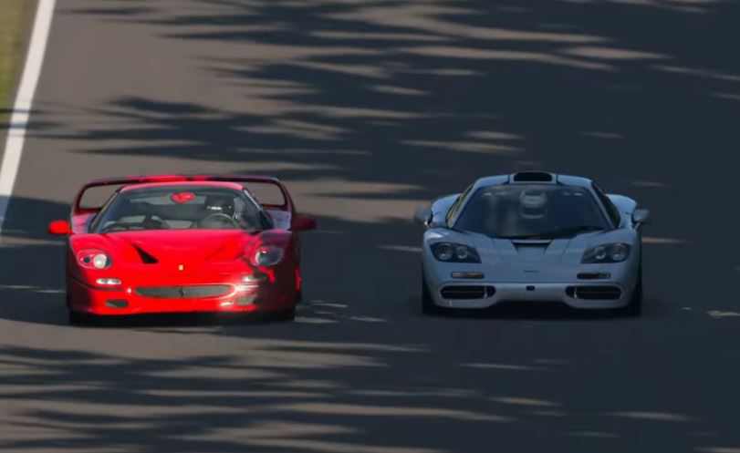 Crédit photo: Raceluxius McLaren F1 et Ferrari F50 duel sur circuit comparatif supercars années 90