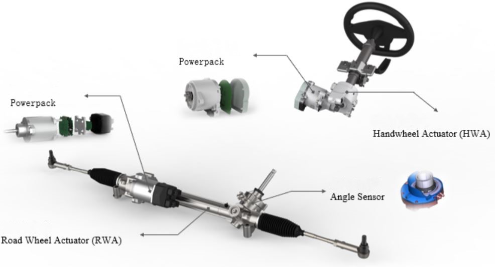 Crédit photo: photo d’llustration des differents élémentscomposant la technologie steer by wire